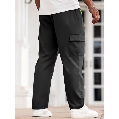 1pc Men's Fashion Solid Color Pants with Zippered and Drawstring Multi-Pocket Casual Breathable Trousers, Suitable for Summer Outdoor Activities